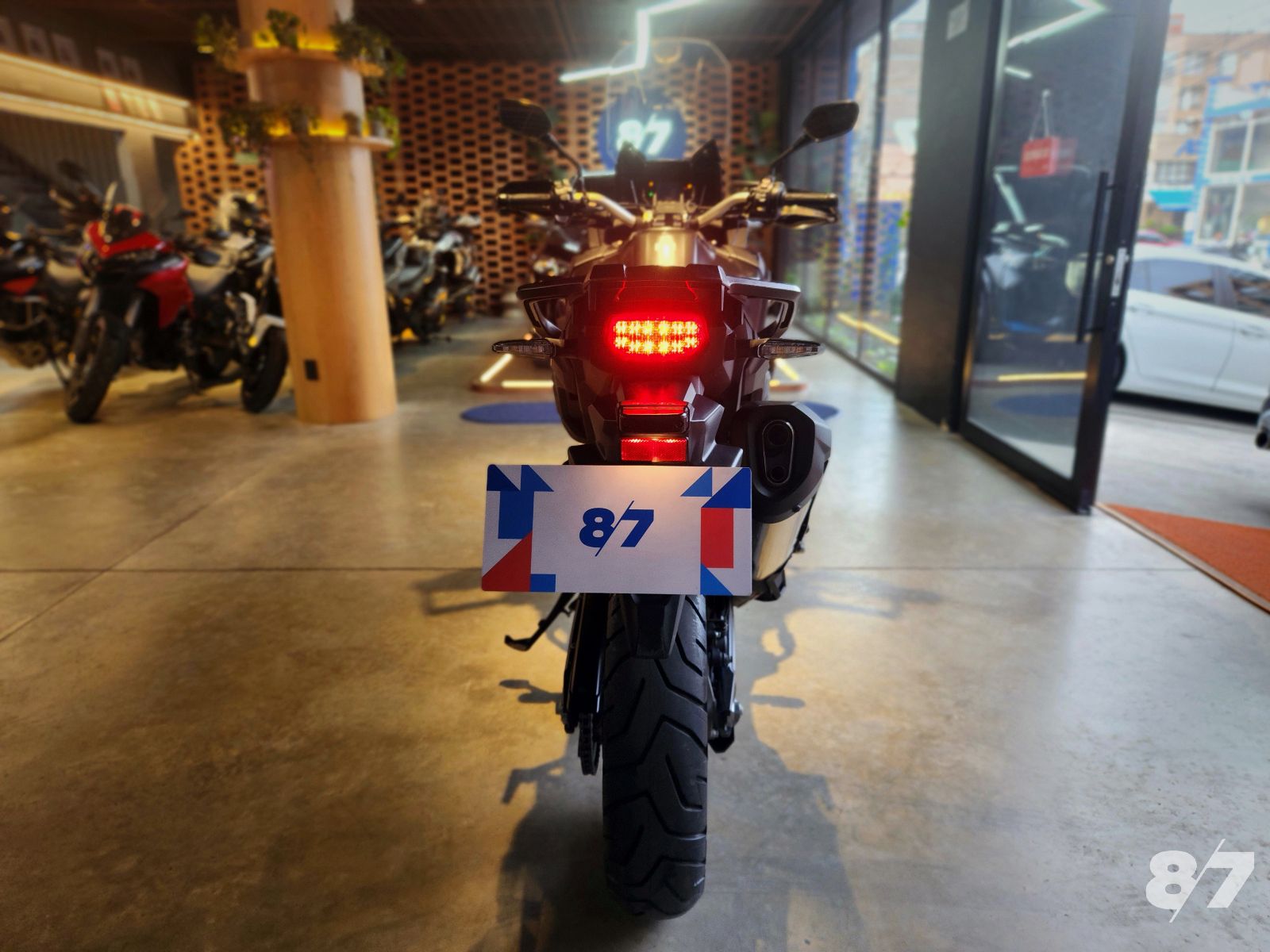 EQUIPAMIENTO: Sistema de transmisión DCT (Dual Clutch Transmission), que permite cambios automáticos o manuales, una suspensión delantera con horquilla invertida de 45 mm y 230 mm de recorrido, y una suspensión trasera con monoamortiguador ajustable de 220 mm de recorrido. Además, cuenta con frenos con sistema ABS, discos dobles en la parte delantera y un disco simple en la parte trasera, neumáticos 90/90-21 delante y 150/70-18 detrás, ideales para todo terreno. La pantalla TFT a color ofrece información detallada del vehículo, incluidos los modos de conducción, el nivel de combustible y la temperatura. También tiene tres modos de conducción (Tour, Urban y Gravel), control de tracción ajustable (HSTC) para mayor estabilidad en diferentes condiciones, y faros LED con luz de posición. Todo esto la convierte en una moto versátil y confiable para diversas condiciones de manejo.